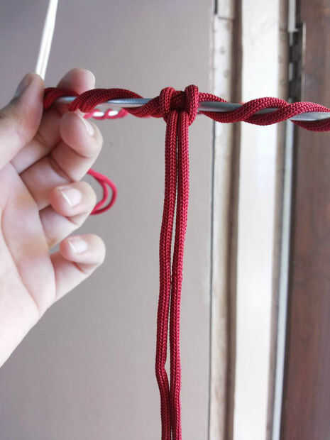 2. Ate el resto de los nudos como se muestra en las imágenes. he usado nudos dobles.