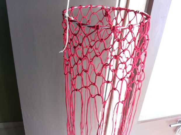5. cuando sus filas de nudo en la parte inferior, empezar a disminuir la distancia entre nudos para disminuir el tamaño de la base, hasta que no se puede más. Entonces, empezar a saltar pares de cable.