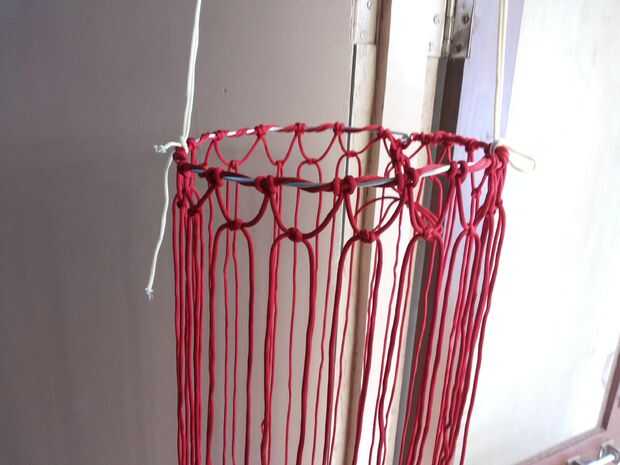 6. los cables se saltan formarán la franja en la bottom.there vendrá una etapa donde no se hacen los nudos más.