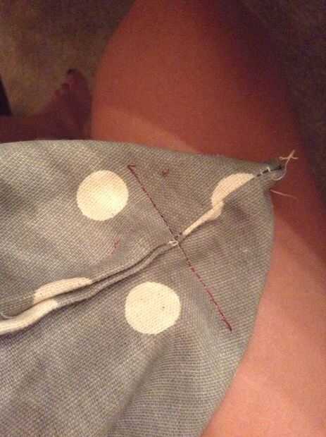Los cabos sueltos del perno para arriba según la costura lateral de centro en la esquina inferior. Cordón será en el exterior pero place que las clavijas en el revestimiento o sus pernos serán incluidos en el turno de costura mal lado hacia fuera plana en la parte inferior de la bolsa. Asegúrese de que puede coser a través de ambos el forro de la tela exterior. Aproximadamente 2 pulgadas desde el punto de coser. usted será coser el cording a en la costura inferior. A la bolsa derecha hacia fuera y usted está listo para ir!