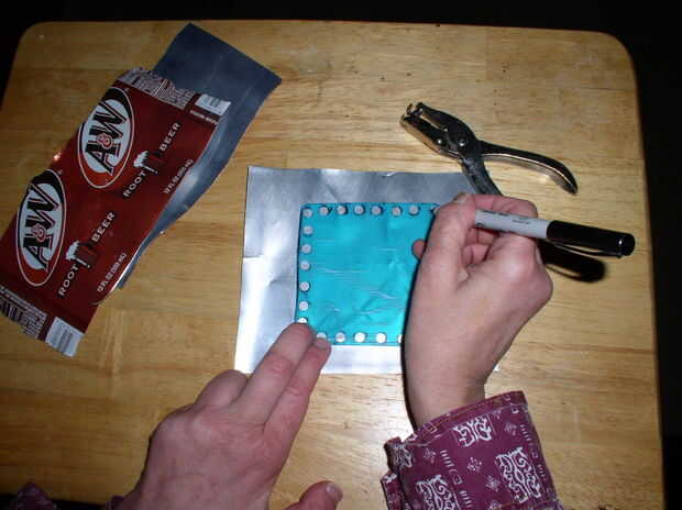 1. Coloque la plantilla en el interior o el lado sin pintar de hoja de aluminio.