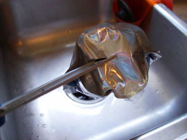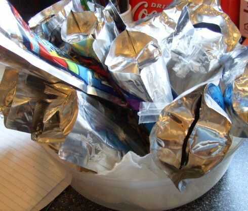 Después de que alguien ha disfrutado de la hacer jugo un "corte" en la parte inferior de la bolsa.