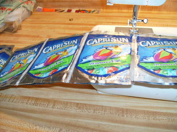 Comenzar a coser el traslapado los bordes de los dos primeros paquetes (usted debe han sobrepasado los cuando usted graba los.) Asegúrese de que estén superpuestas y la costura en la misma dirección por filas en filas completamente uniforme.