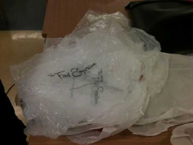 soy un consultor para una empresa de productos de cocina. Me dieron un delantal gratis, pero no soy el tipo de plataforma. Decidí convertir mi delantal en un bolso de mano de gran logo para llevar catálogos extras alrededor (logo ha sido a oscuras).E