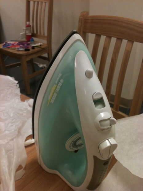 Colocar una hoja grande de papel de pergamino. Organizar bolsas en la parte superior en un patrón que se enclavija. Hierro en medio puesta sobre papel de cera. Cáscara trasera pergamino rápidamente mientras que el plástico se enfría. Usted sabrá que la plancha está demasiado caliente si las bolsas encogen rápidamente cuando utilizas la plancha o si hay orificios en el material. Suficiente calor para fundir las bolsas funciona mejor.