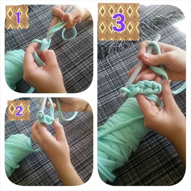 Empiezas haciendo una cadeneta, y vas haciendo punto bajo sobre ella y así sucesivamente.