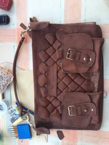 Bolso de mujer hecho de cuero de corte por láser con luz LED y cargador de teléfono (3 / 6 paso)