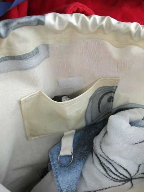 En el interior hay un bolsillo para el reloj y otros objetos pequeños, un bucle de llavero para que las llaves no caigan y en el exterior he puesto un pequeño bolsillo transparente para mi carnet de la piscina para no olvidarla.