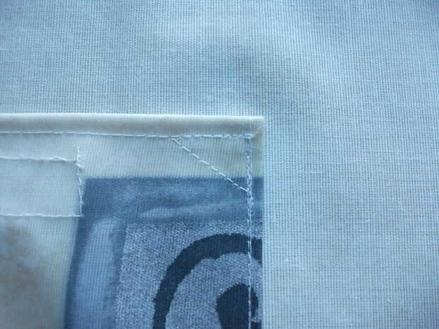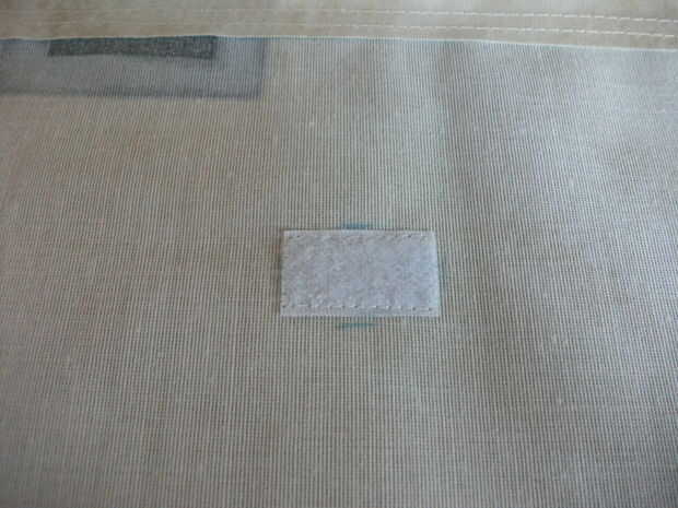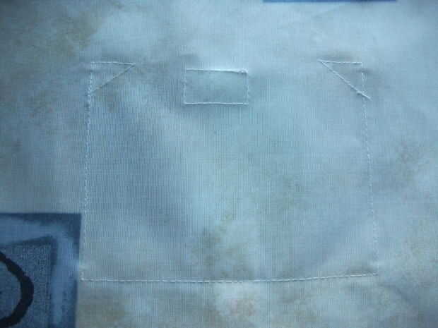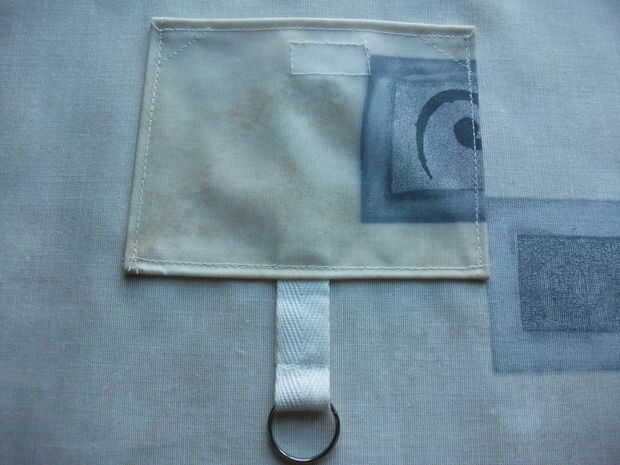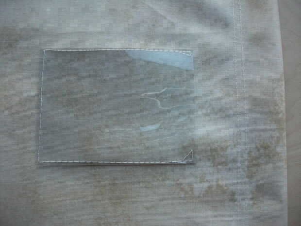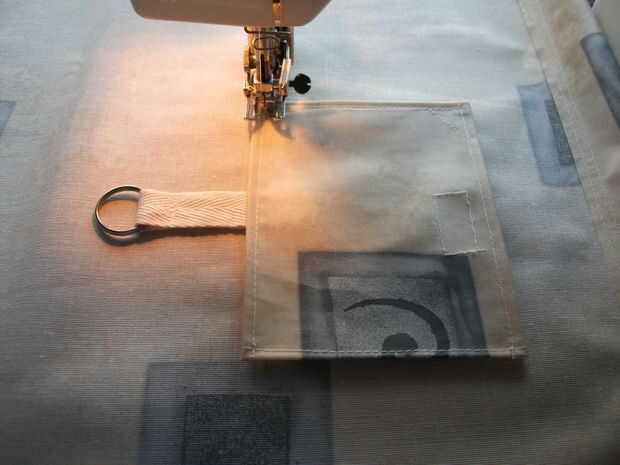 A la derecha (exterior) de la bolsa, en el otro lado al lado con el bolsillo interno, coser alrededor de tres lados de su PVC transparente, dejando el lado superior plegada.