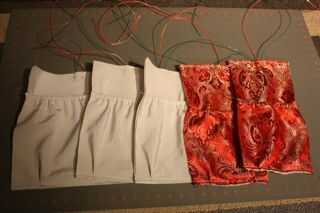 El siguiente paso consiste en cableado de los interruptores. Usé alambre de calibre 24 para realizar las conexiones más fuertes en el Lilypad. Primero había despojado un extremo pequeño del cable y lo envolvió con una pinza pequeña para crear un bucle. Había soldado el bucle juntos para que no resbale. Ahora, con el resto de 6" de la rosca, puede coser el cable directamente a los lados, asegurándose de que usted tiene una conexión firme en el lazo. Además, codificadas por colores el cable así que pude mantener pista; Elegí verde para tierra y rojo para positivo. Otra vez, se puede repetir este proceso cuatro veces más por lo que terminan con cinco lados con bolsillos, interruptores y cables!