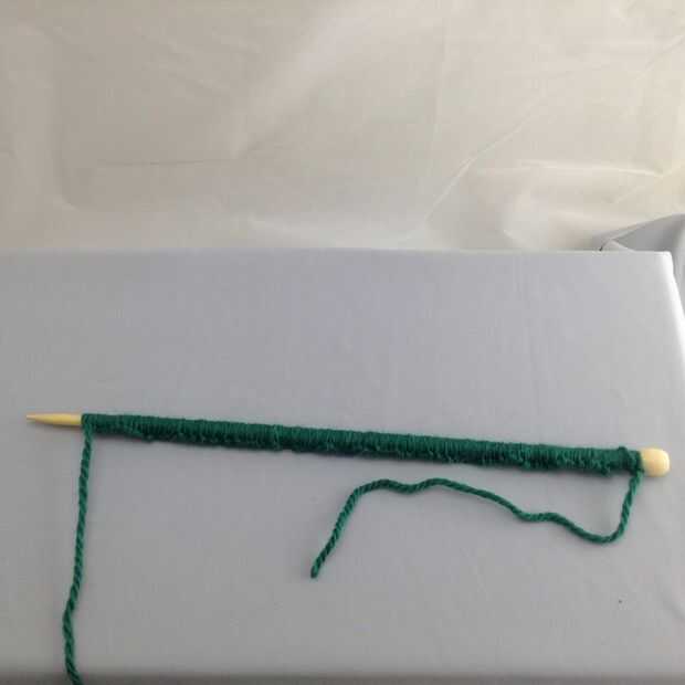 Para hacer la correa del bolso, lanzar 150 punto (alrededor de 50 pulgadas). Usted puede hacer más corto si quieres. Tuve un momento difícil con esta parte porque estaba usando un agujas de 10 pulgadas. Yo le aconsejo que tienen 14 pulgadas agujas para tejer la cinta cómodamente.