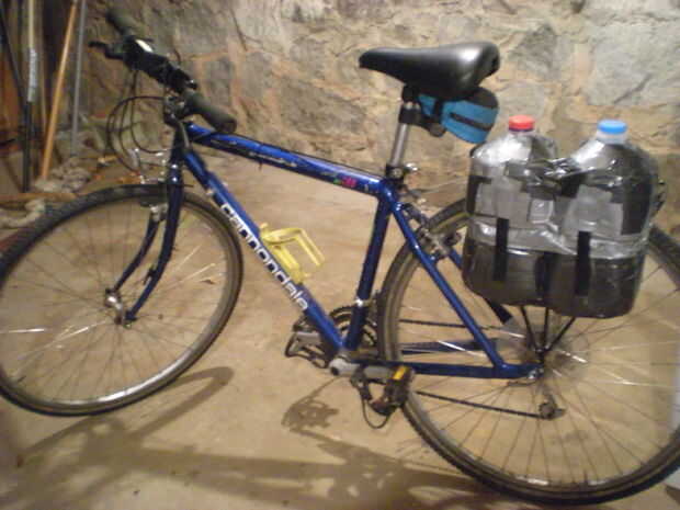Todo lo necesario para construir esta bolsa de sillín de botella de leche es relativamente barato y común.