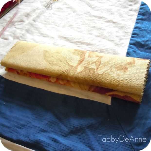 (Sugerencia: si se mide hacia fuera la tela derecho apenas puede doblar la parte inferior y superior de la tela al centro (como se ve en la foto tres) luego doblar por la mitad (como se ve en la foto 4) y hierro. Me encanta mi pliegues de tela de hierro porque es más fácil de coser. Mantiene su forma).