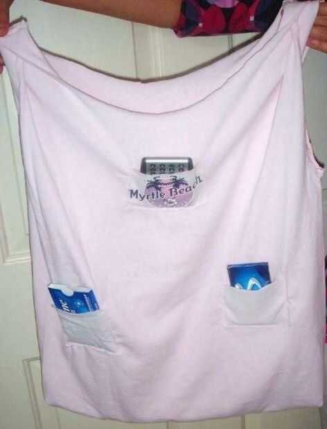 -Otra variante a considerar.. .leer la imagen de abajo de la bolsa de camiseta rosa t. Mi amigo y yo agregar bolsillos a la bolsa mediante el corte a trozos y empoderarse en los bolsillos de la manga. Hemos añadido tres bolsillos en el frente de la bolsa! Estas son más decorativas que útil... próxima vez añado bolsillos, los hará más profundo.