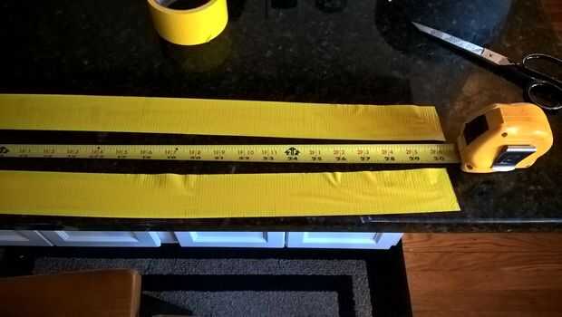 Medir a dos tiras de 30 pulgadas de su color principal de la cinta del conducto. Ahora ponemos uno encima del otro para crear una correa. P.D. usted puede agregar cualquier diseño que desee en la correa.