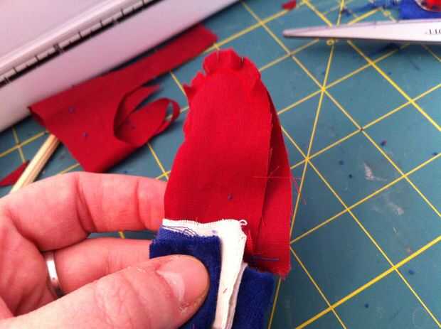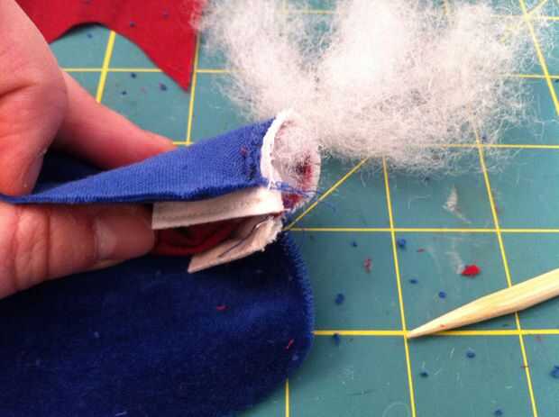 Repita todo desorden en el otro brazo. Rellene los brazos con bateo de.