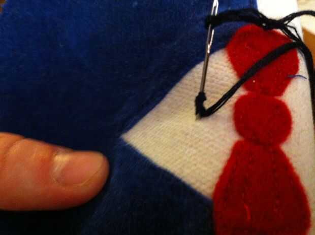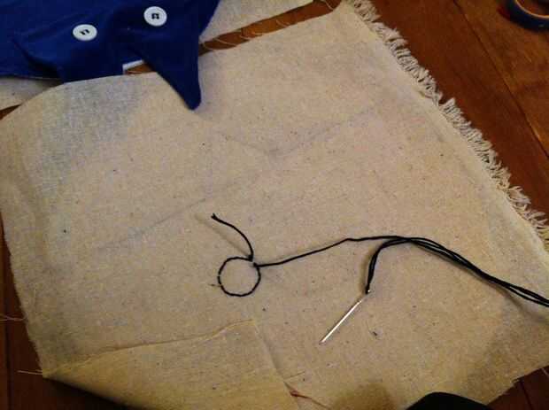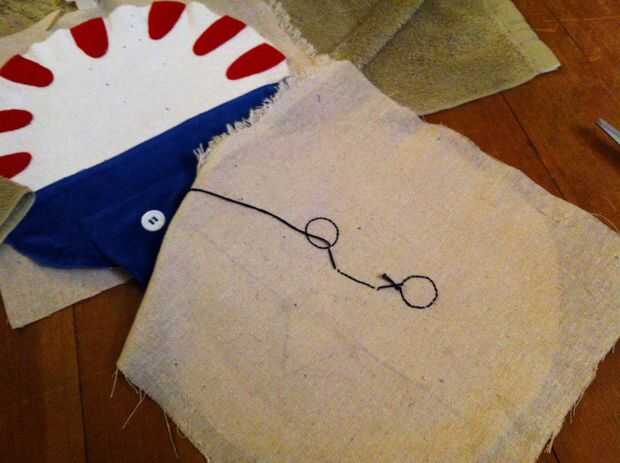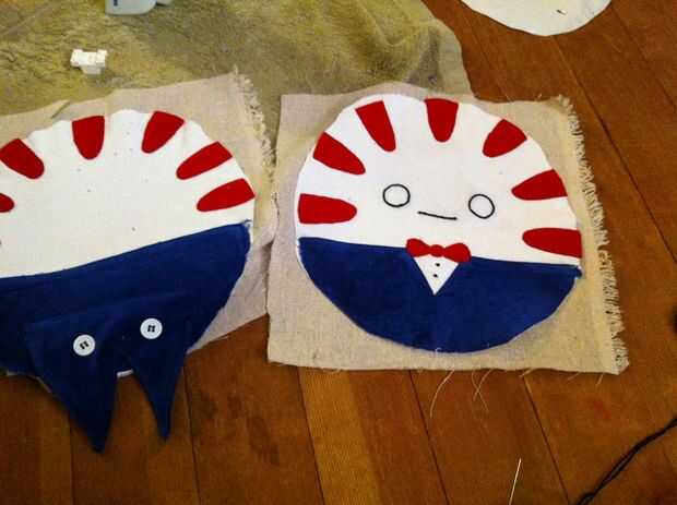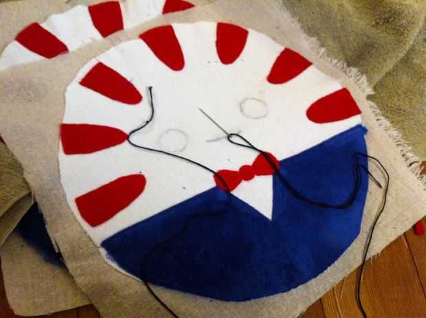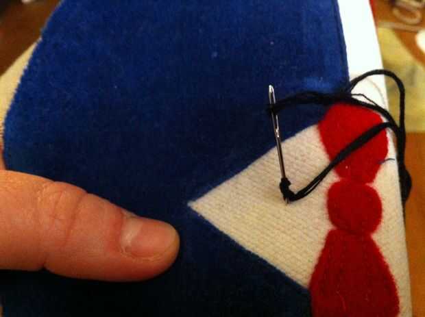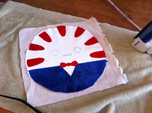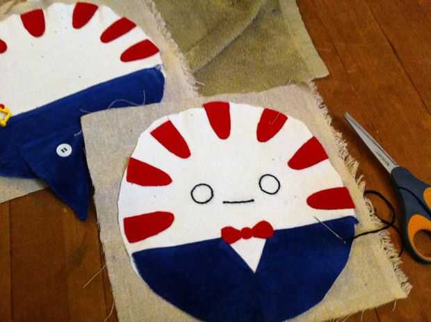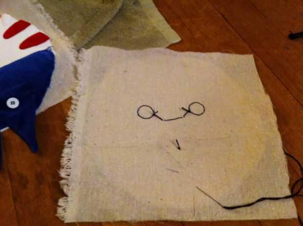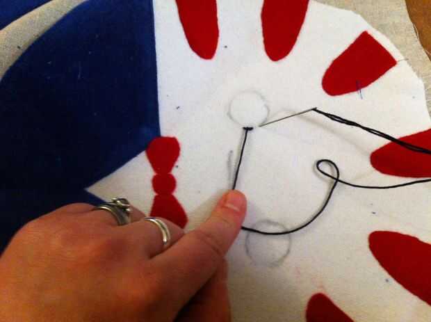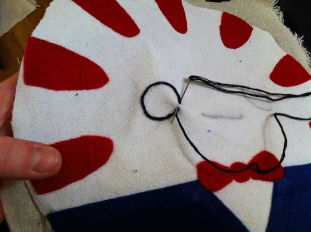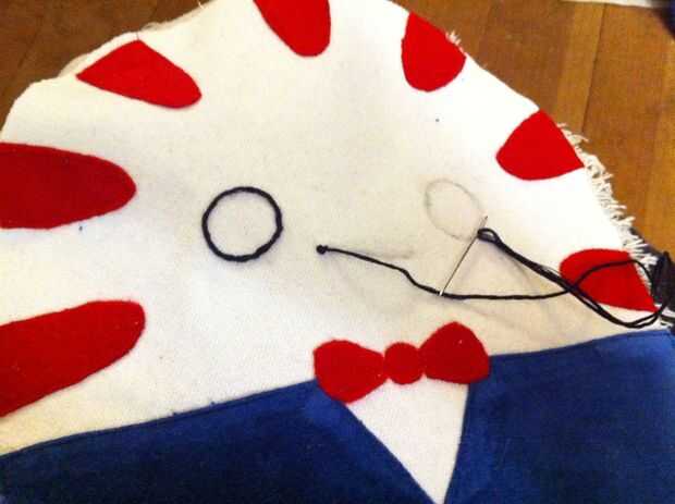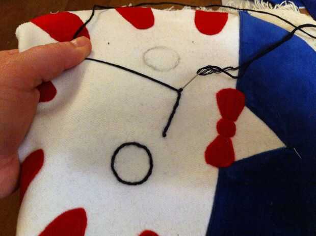 Utilizar una puntada de tallo para bordar alrededor de los ojos y la boca. He utilizado un nudo francés en las esquinas de la boca. También he añadido unos botones de nudo francés en el juego por debajo de la pajarita. Jessyratfink tiene algunos grandes hacer puntadas de bordado como el nudo francés tutorial aquí.