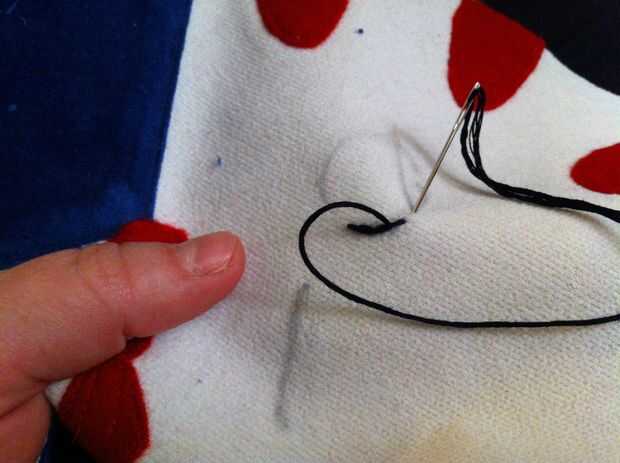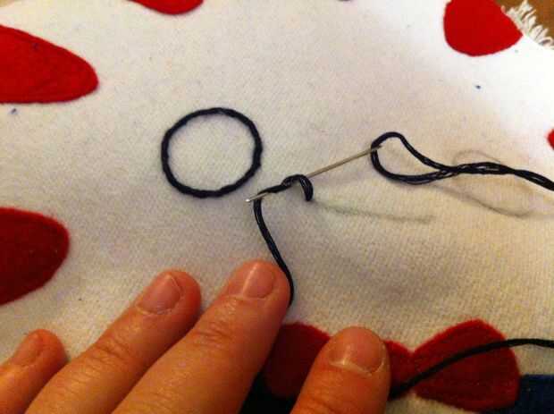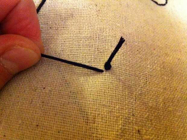 Un nudo en la parte posterior de la tela una vez que has bordado la cara.
