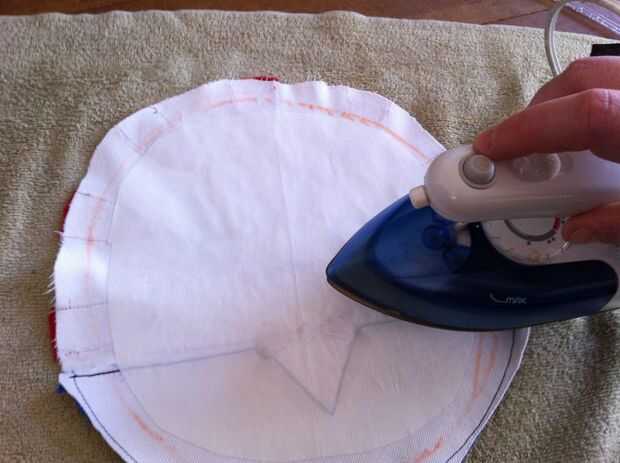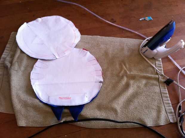 Cortar círculos de hierro en adhesivo pulgadas un par más pequeño en diámetro que los círculos de tela. El adhesivo en la parte posterior de los círculos de hierro, retire el soporte de papel, luego plancha la muselina sobre el adhesivo. La razón por la que no quería poner pegamento a los bordes fue que tengo que coser la bolsa juntos, y estaba usando el adhesivo resistente aquí. Que cosas puede mugre su máquina de coser y realmente no está significado para ser cosidos. Es factible dar borde a través de una capa de la materia, pero no tratar con más de una capa.
