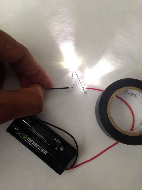 Conecte dos alto brillo LED blanco de paralelo, que es la dos larga final (+ ve terminal) y los dos extremos cortos juntos.
