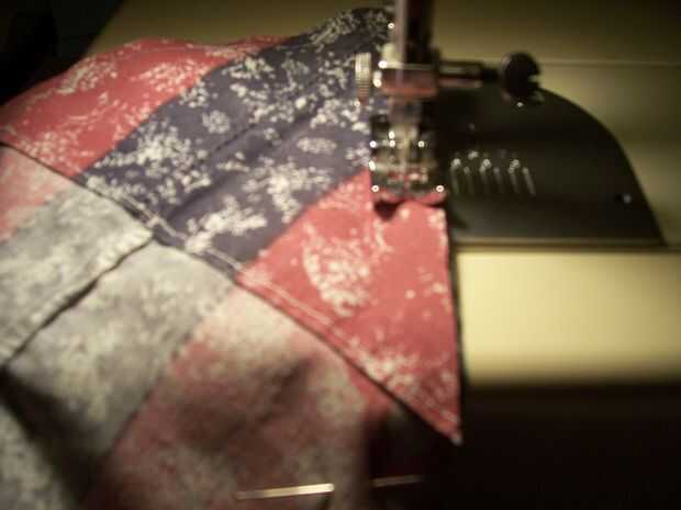 Nota: Si una bolsa de fugitivos con un acabado reversible interior.. .pin los lados bonitos de la funda de almohada junto y coser los bordes crudos en la diagonal (véase esferoide). Para reducir el volumen en la parte superior, recortar antes de adentro hacia afuera. Continuar con la anterior * instrucciones.