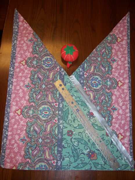 PIN (o cinta adhesiva) que se reúnen las dos diagonales y puntada donde se superponen las secciones fijadas. Voltee la bolsa fuera de rango y repetir. Gire a la bolsa de adentro hacia afuera y otra vez, repetir.
