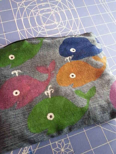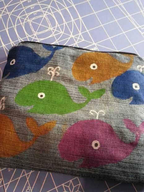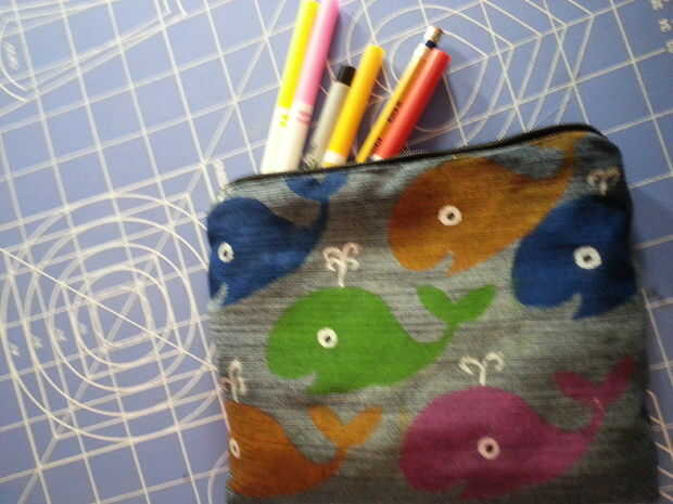 vi la tela más adorable y yo sabía que tuve que volver a crearla. Además de la bolsa de lápiz que estaba llevando ha visto días mejores. Mató dos pájaros de un tiro y me hacen un bolso del lápiz de ballena.
