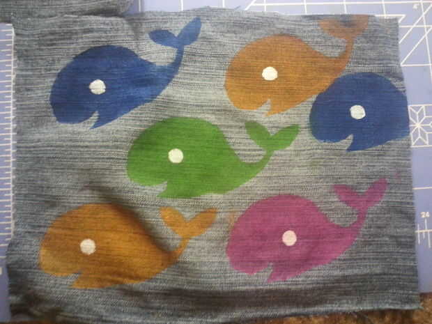 Utilizando una perforadora, haz una perforación en el borde de una tarjeta de nota y la plantilla de los ojos con pintura blanca. Una vez seco se dibuja en la parte negra del ojo. Entonces libre entregué el agua para cada una de las ballenas. Asegúrese de que no coloque las ballenas muy cerca uno del otro o va a ser su surtidor de la ballena en otro los de la boca por lo que no parece que está comiendo.