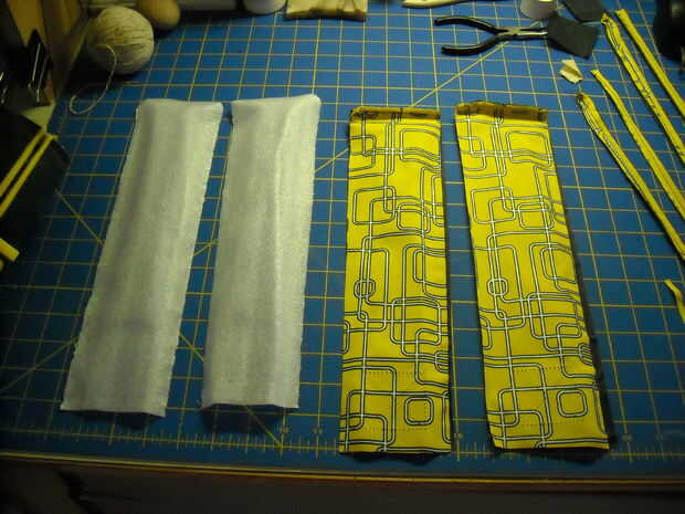 Debe calcular estas medidas basadas en el tamaño de su netbook y cómo ancho desea que la bolsa que. Fácilmente podría dejar los paneles en su anchura original. Cualquier menor que aproximadamente 2,5 pulgadas harán más difícil coser a lo largo de la parte inferior y la correa del hombro un poco más difícil coser luego.