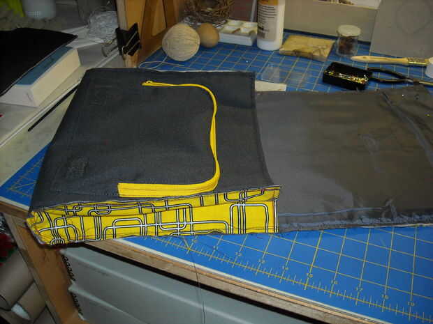 Fije los paneles laterales a la vanguardia del cuerpo del bolso. PIN los lados al cuerpo mal lados juntos y coser sobre costuras de.25 pulgadas. Tengo una máquina de coser muy antigua y robusta cantante (sólo va hacia adelante, no hay puntada atrás) pero funcionaba bien. Preste atención al redondeo de la parte inferior de la bolsa. Usted puede tiene que aliviar la máquina a lo largo de la mano para evitar todo deslizamiento aparte.