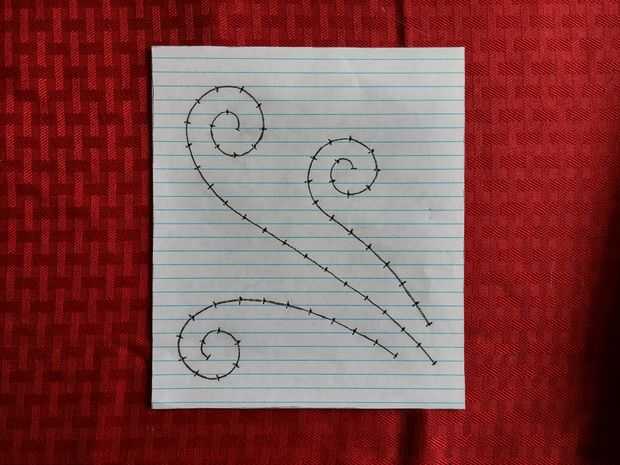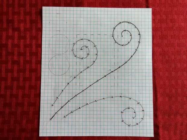 Después de decidir sobre las dimensiones de la bolsa, dibujé en el papel de gráfico por lo que pude escalar el patrón LED del tamaño adecuado. Empecé con líneas para indicar mi forma de tira, por lo que podría determinar el espacio que me ha gustado para los LEDs. Fui con una distancia de 1/2", por la longitud de la línea, por lo que los LEDs aparecieron más uniformemente espaciados a lo largo de las curvas.