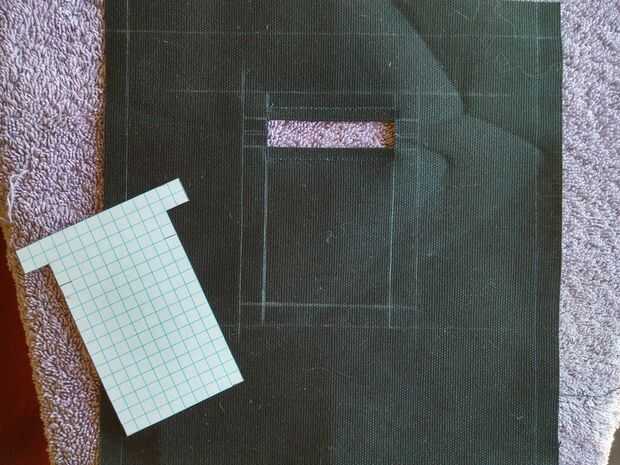 Luego, cogí mis tijeras de tela (teniendo cuidado de no hacer) y cortar las piezas. Luego marqué donde el bolsillo batería ir en una de las piezas delanteras del lienzo y cortar una línea en la parte superior de la zona de bolsillo, con pequeño defina aberturas en ambos extremos, hacer dos aletas, que servirán para crear una "puerta" en el bolsillo de la batería. Asegúrese de que esté lo suficientemente grande como para deslizar fácilmente la batería a través de.