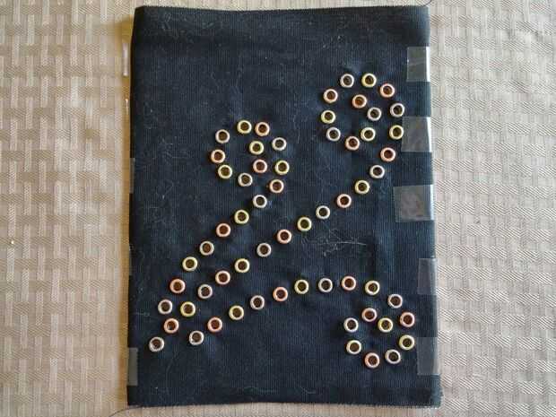 En este punto, podría unir las anillas a los lados de la lona, pero elegí a coserlas posteriormente.
