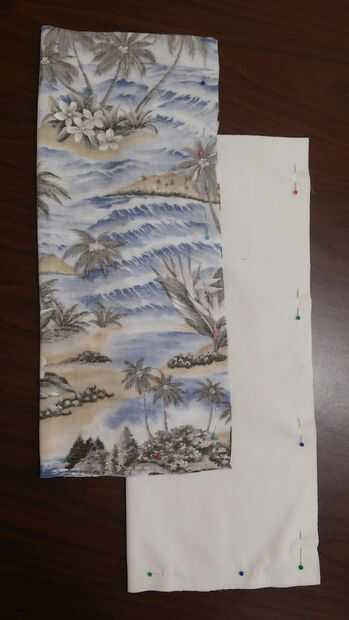 Doblar a la tela en la mitad longitudinalmente, derecho contra derecho. PIN.
