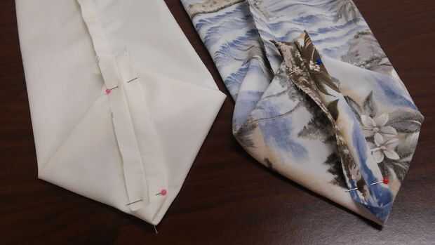 Abrir las esquinas de la parte inferior planas y pines según foto.