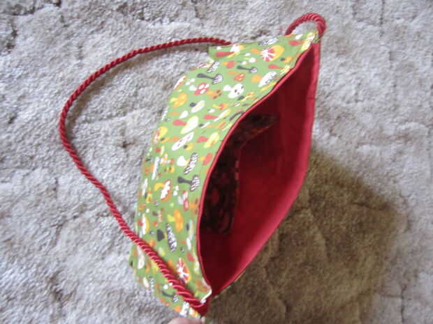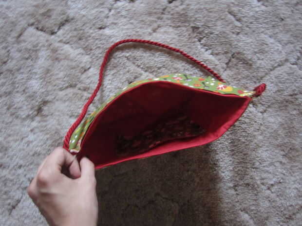 La bolsa final es aproximadamente de 13 x 9 pulgadas con el bolsillo siendo de 5.5x5 pulgadas