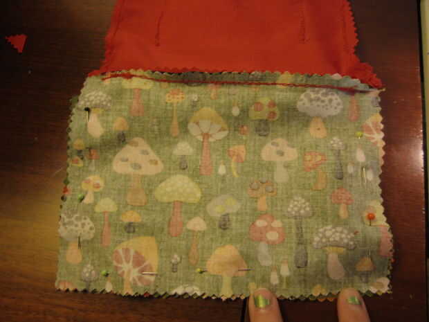 1. perno de cada lado y la parte inferior del forro juntos y coser a lo largo de cada uno de estos lados. Al hacer esto, intentar coger los extremos de la cremallera (Foto 1)