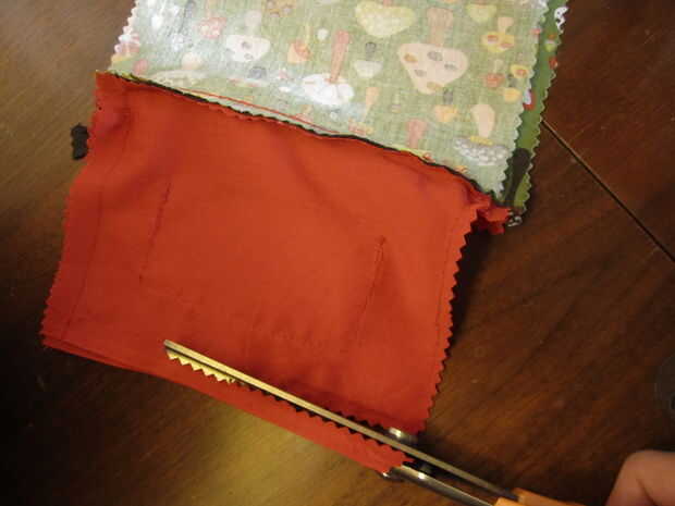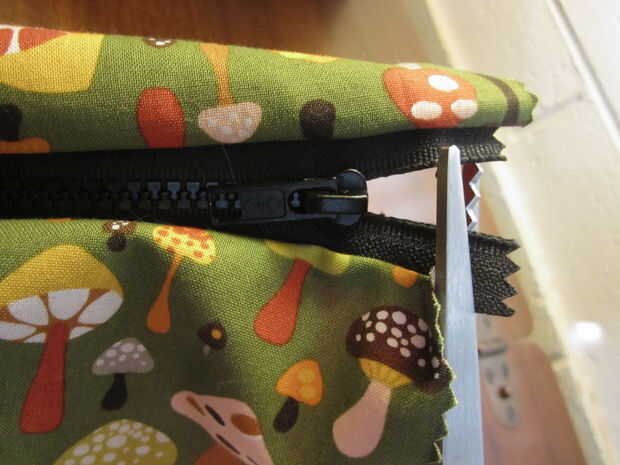 2. después de hacer esto, corte el exceso extremos de la cremallera (también conocido como cualquier cosa que no ha sido atrapado en la tela exterior o forro y no forma parte de la cremallera real) (Foto 2)