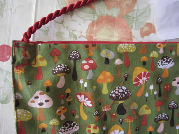 6. top cosido en la parte superior de la bolsa, a cerca de cualquier lugar que quedó abierto, ya sea desde los orificios del mango o la pulgada deja a voltearlo de lado derecho hacia fuera.