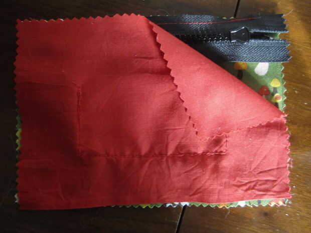 3. fijar el revestimiento a la cremallera y cose por el borde de la cremallera otra vez tratando de cierre la los dientes de la cremallera así (pic4). A pesar de que no puede ver la cremallera, se puede sentir contra el prensatelas (Fig 5).