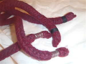 Pase la correa del hombro a través de los agujeros y anudar los extremos. Si las correas están demasiado largas, y correctamente han felted el cable se pueden recortar los extremos sin ellos continúa.