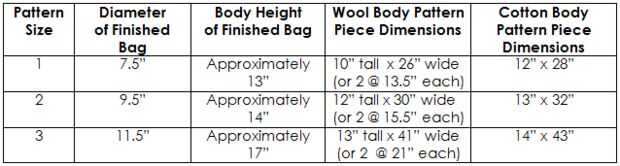 Su bolsa varían en tamaño dependiendo del tamaño original del suéter A y cuánto reducido. En el cuadro mostrado a continuación verás diferentes medidas. Pensar en estos como guía de su patron y proyecto terminado. Esto no es una ciencia exacta; necesita ser un poco flexible con sus expectativas en el tamaño y medidas.