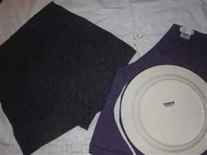 Cortar 2 círculos de suéter para el fondo de su bolsa. Necesita círculos para que coincida con 'Diámetro de acabado la bolsa' para el tamaño del patrón a continuación además de dos pulgadas (margen de error y costura subsidio). Tan por ejemplo 13,5 pulgadas para el patrón de tamaño '3'. Yo utilice una placa de cena como mi patrón a partir y sólo aumentar o disminuir el tamaño de corte a partir de ahí.