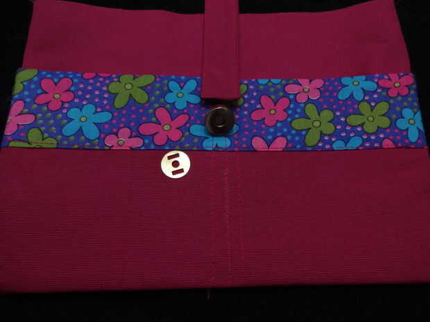 Fije una pieza de la broche de imán a la tela de 6 cm x 13 cm y la otra pieza en el bolso sí mismo. Doble a la tela y coser todos los bordes. Se trata de la cerradura de la división principal.