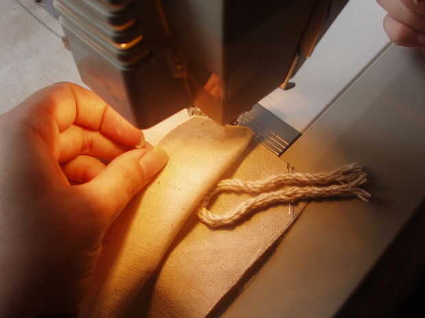 7) coser juntos una bolsa de lado derecho hacia adentro en el lado derecho; en la parte inferior; a la izquierda