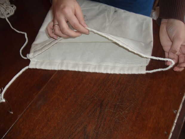 1) lazada pasar un cable a través de barras y lazos como en las fotos Ranura 2) un cable restante en 2 partes 3) ATA para arriba la primera parte como en una foto 4) ATA para arriba la segunda parte similar del otro lado 5) cuando se tire en cuerdas a bolsa debe estar cerrada