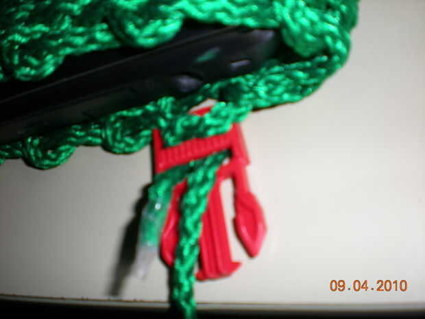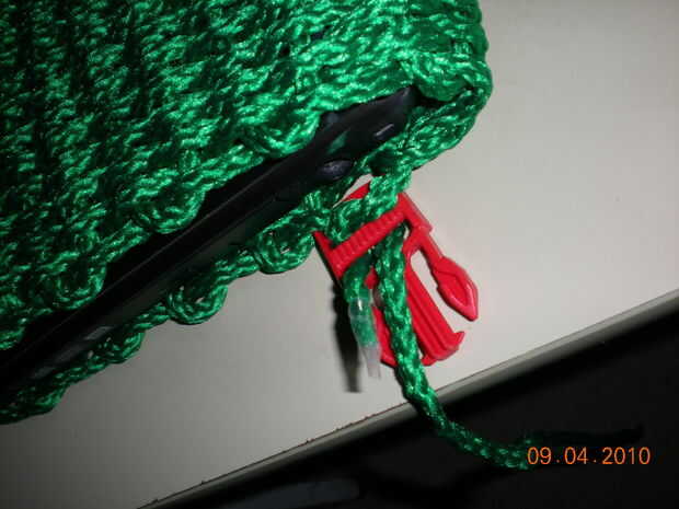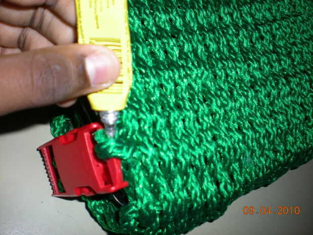 1) cubierta de la computadora portátil con la pieza tejida terminada.