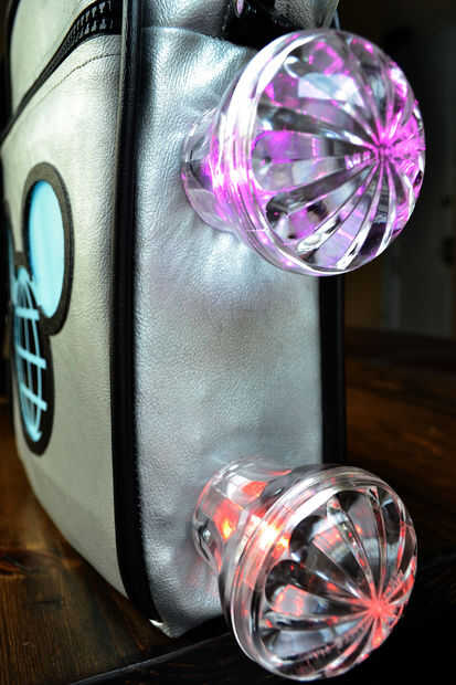 No he tenido la suerte capturar a una viva de la visión del espectáculo World of Color, pero con un próximo viaje a Disney World, quería ver qué podía hacer para incorporar las luces y tecnología de control en algo que no sea de las orejas de Mickey. Las orejas son realmente divertido mirando, pero por varias razones, incluyendo querer ser capaces de ver el efecto personalmente, espera el reto de instalar la tecnología en algo más que tenía más sentido para mí. Hay un buen número de limitaciones para reincorporar la electrónica a menos que empieces a soldar piezas pequeñas y delicadas, que yo no tenía ningún interés en. Trabajando con esas limitaciones (colocación de la batería, limitado espacio de LED), surgieron algunas ideas, pero finalmente decidió crear una pequeña bolsa de hombro donde se incorporo a los dos fija comprada.