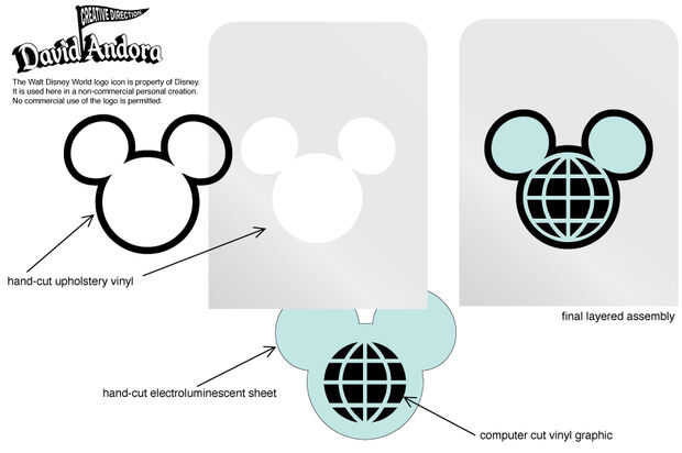 El logotipo es el vintage logo de Disney World que está empezando a aparecer otra vez en mercancía del parque. (Creo que debe regresar a usarlo a tiempo completo, como creo que realmente es el mejor logo que tienen el Resort). Encontré una resolución más alta del logotipo en línea y reconstruye una imagen vectorial usando Adobe Illustrator, donde fue diseñado el resto del patrón. Tenga en cuenta este logotipo es propiedad de la compañía Disney y no se puede utilizar con fines comerciales.