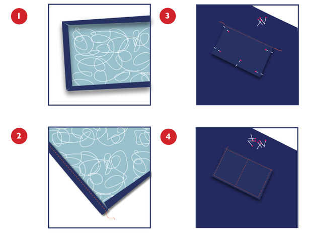 1. corte 2 piezas de tela 7,5 '' x 5'' para los bolsillos. Pliegan los bordes y presione cada bolsillo.